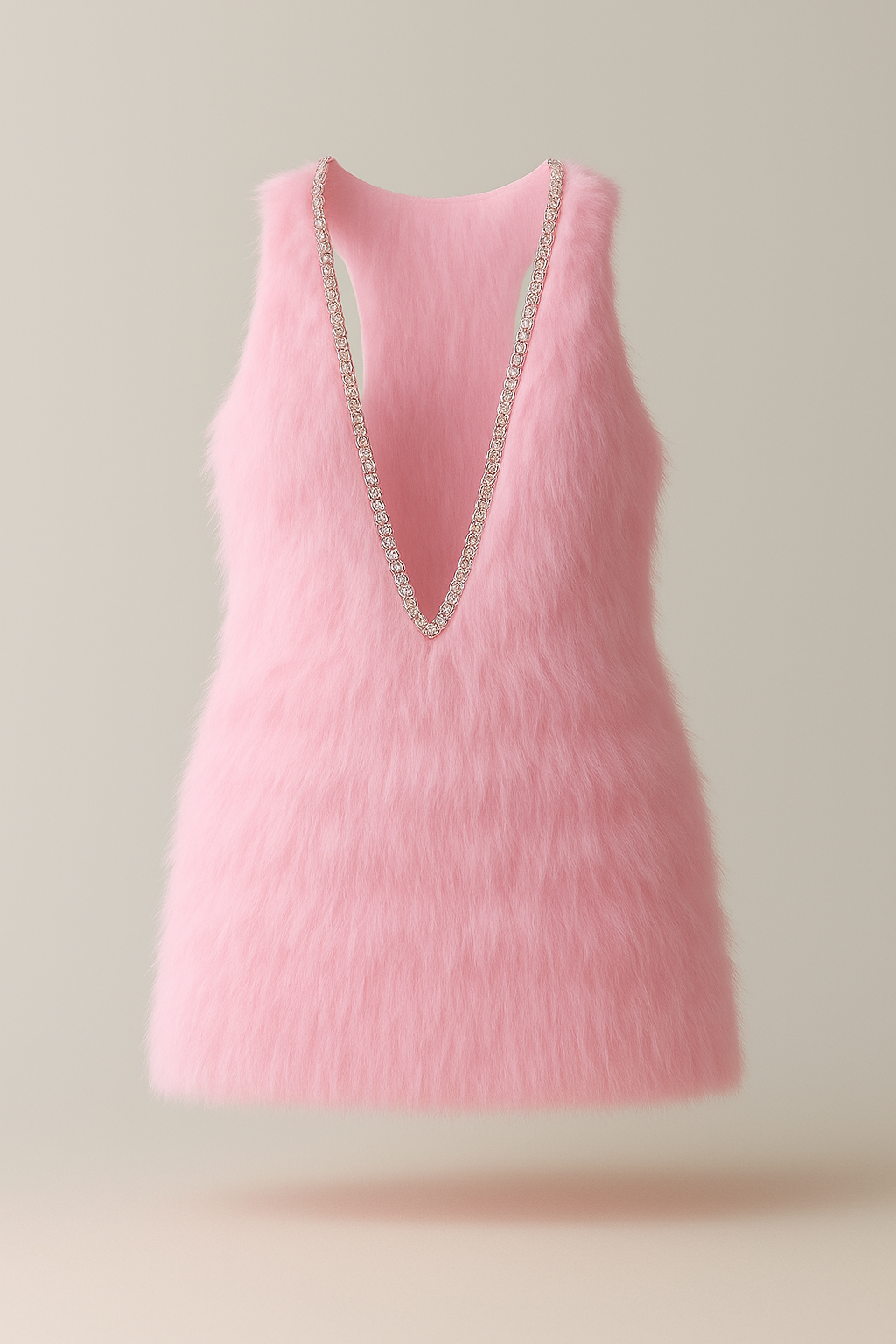 Pink Faux Fur & Crystal Mini Dress